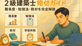 手続きガイド 2級建築士を独学で合格する全対策ガイド|難易度と勉強法・おすすめ教材まで徹底解説 「2級建築士の合格率は【25%前後】と決して高くなく、しかも出題分野は学科・製図合わせて幅広く、約【700時間】の勉強時間が目安とされています。独学を選ぶ方の中には、『そもそも自力で受かるの?』『仕事や家事と両立できるか不安』『どんな教材や... 2025.09.30 手続きガイド
