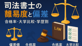 手続きガイド 司法書士の偏差値について難易度を徹底解説|試験合格率や大学比較・学歴別分析つき 司法書士試験の偏差値が【65~67】という数値をご存じでしょうか。偏差値60台後半は全国トップクラスの難関大学と同等レベルであり、国内数ある資格試験の中でも群を抜いています。しかも本試験は例年【合格率4%台】。およそ25人に1人しか合格でき... 2025.09.29 手続きガイド