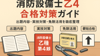 「乙4に挑戦したいけど、何から手を付ければいい?」そんな不安を解きほぐします。乙4は火災報知設備の点検・整備に直結する実務資格。筆記は30問、実技は記述中心で5問前後、合格には筆記「各分野40%以上かつ全体60%以上」+実技60%以上が必要...