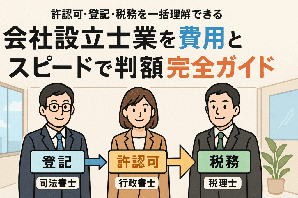 会社設立の最初の壁は「誰に何を頼むか」ではないでしょうか。登記は司法書士の独占業務、許認可は行政書士、税務は税理士、労務は社労士——役割が分かれる一方で、判断を誤ると予定が数週間遅れることもあります。特に飲食・建設など許認可業種は会社形態や役員要件で差戻しが起きやすいです。